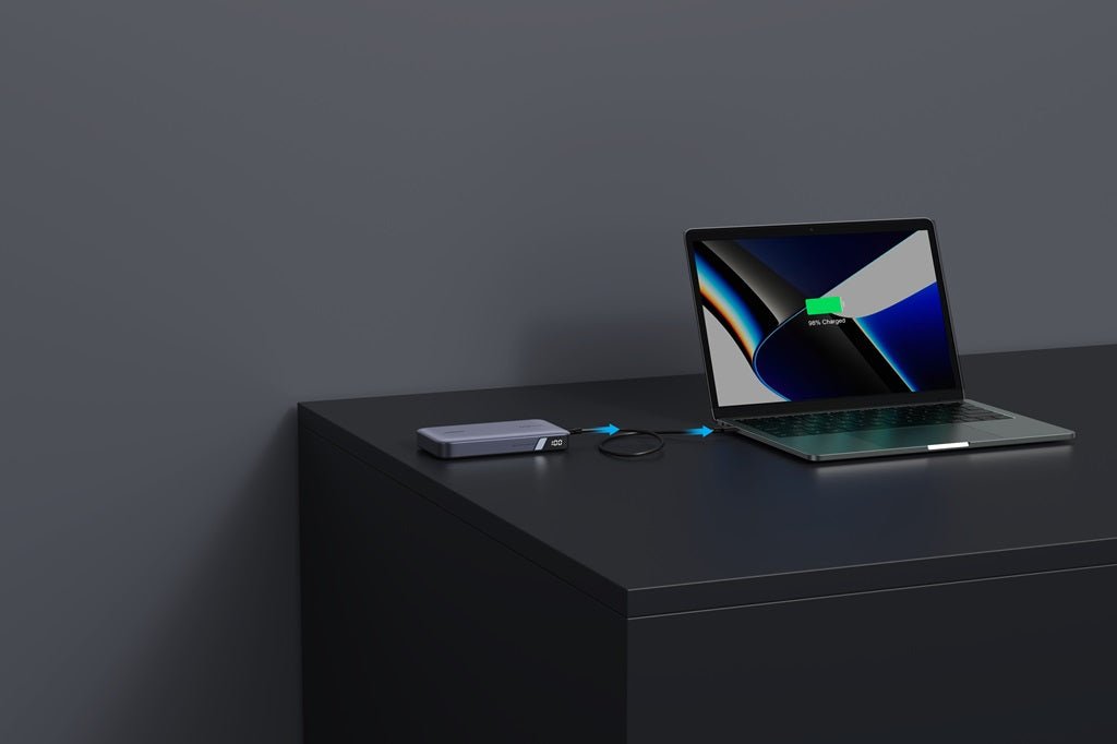 - Opladen voor laptops: met een vermogen tot 100 W kan deze lader een MacBook Pro 16" in slechts 30 minuten snel tot bijna 50% opladen, terwijl tegelijkertijd je telefoon van stroom wordt voorzien.