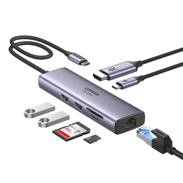 UGREEN Nexode Pro 65W USB C-oplader Slim met EU/US/UK-stekker GaN USB-C-voeding 3-poorts