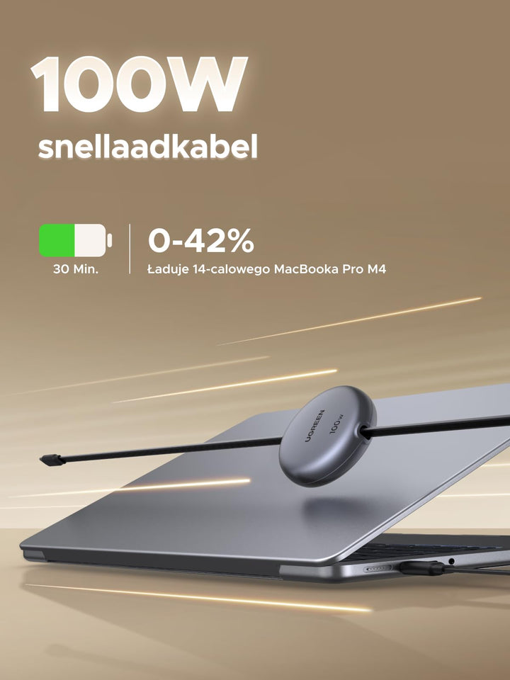 - 100W snel opladen: Ondersteunt PD3.0 & PPS, 30 min iPhone 60%, MacBook 42%, plus 480 Mbps dataoverdracht.