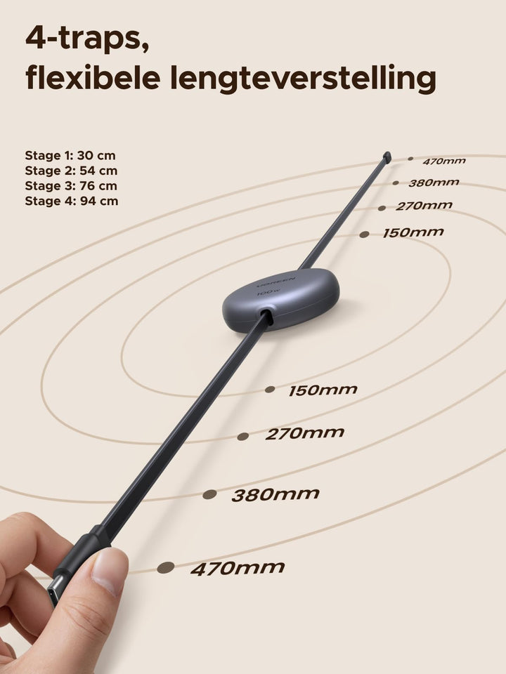- Mini-uitschuifbare kabel: 1 m intrekbare kabel met 4 standen, direct opladen waar je bent. Licht en compact, houdt alles netjes.